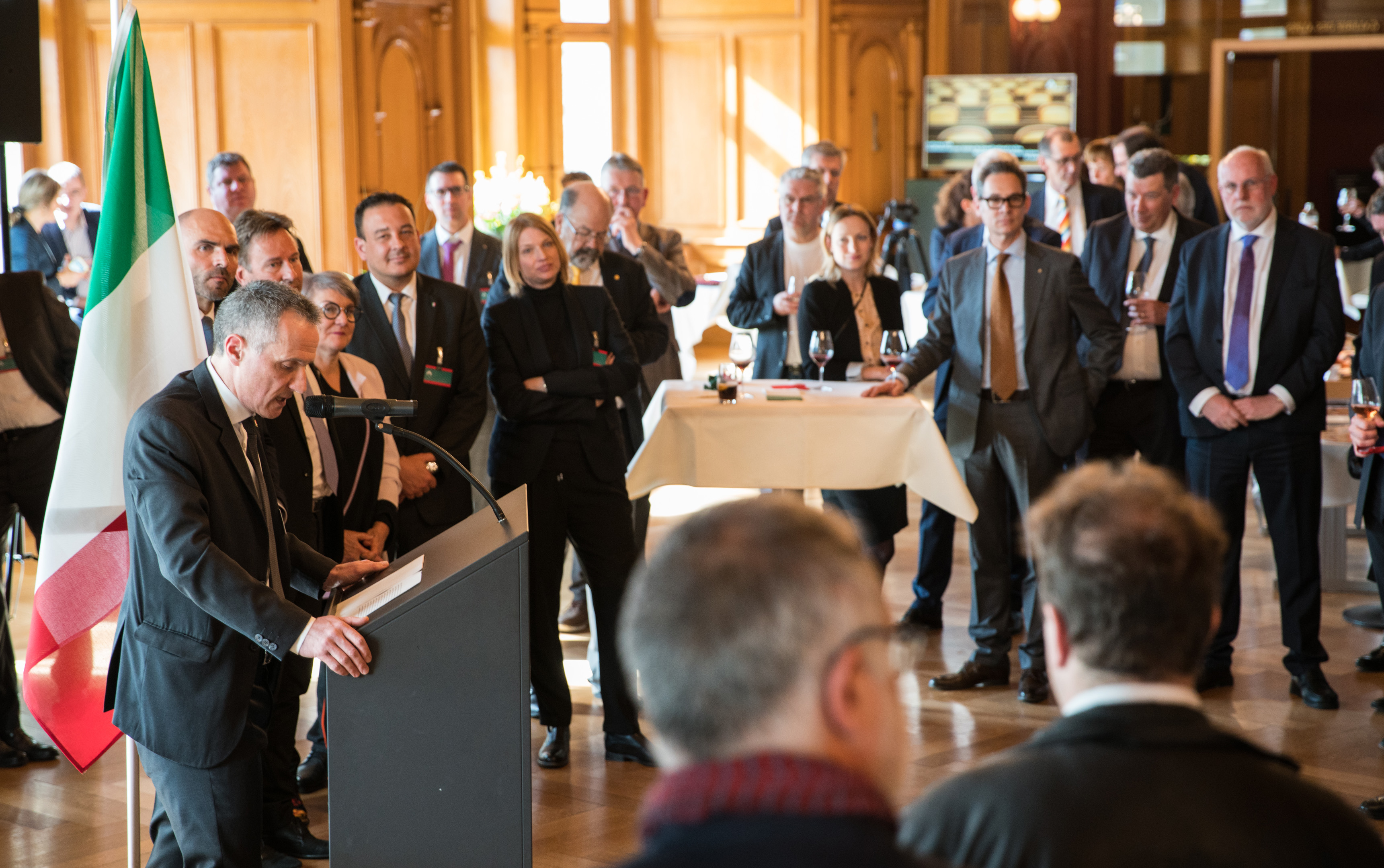Patrimoine horloger, pôle d’innovation et richesses du terroir. Le Canton de Neuchâtel a présenté ses principaux atouts aux parlementaires fédéraux et aux cadres de l’administration fédérale lors d’un événement organisé le 5 mars 2019 au Palais fédéral, à Berne. Le gouvernement cantonal en a profité pour rappeler l’importante contribution de Neuchâtel dans la balance du commerce extérieur de la Suisse et pour plaider en faveur de la réalisation de la Ligne directe entre Neuchâtel et La Chaux-de-Fonds.